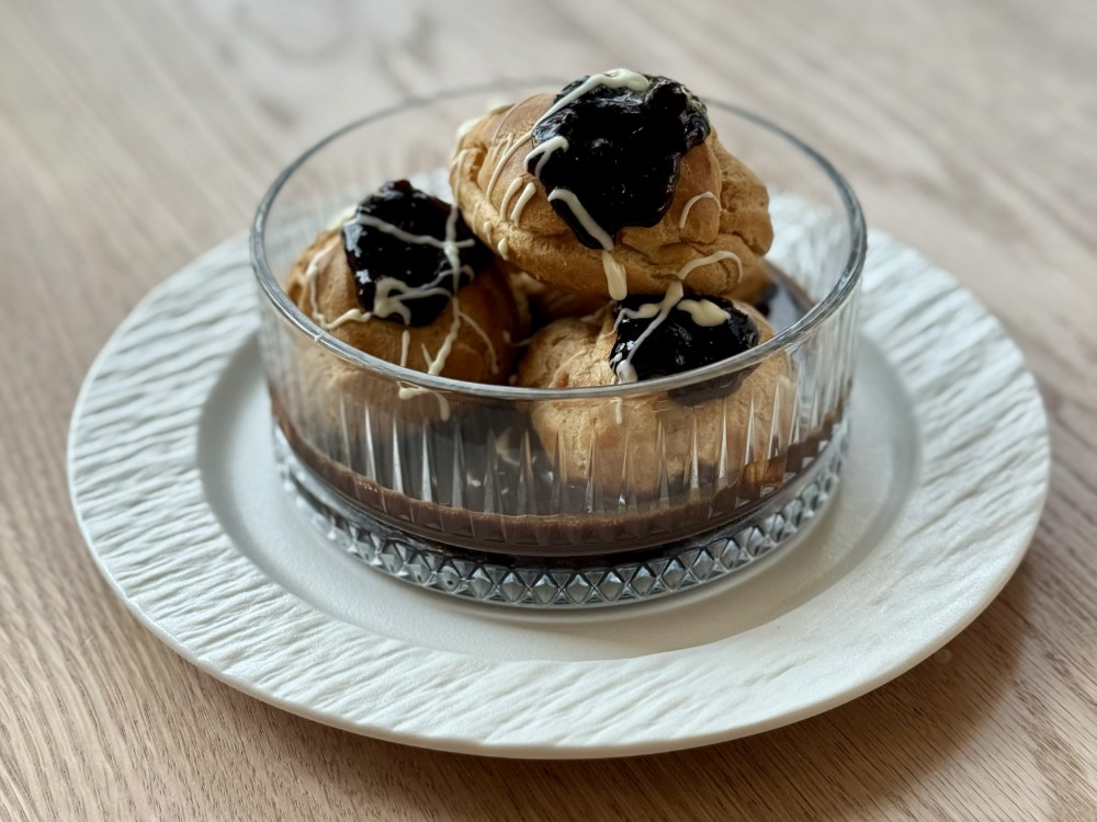 Профітролі в шоколадному ганаші зі смородиновим конфітюром